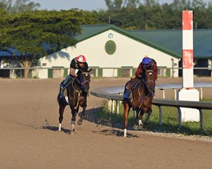 Palm Meadows, Gulfstream Park's satellite training facility in Boynton Beach, Fla., has a 1 1/8-mile main track, a seven-furlong turf track, and a one-mile, L-shaped jogging track, which borders the main track. The latter surface has been utilized by horsemen for jogging their horses while the work on the main track was underway.