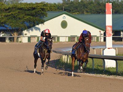 A shuttle was provided in the midst of the track surface reconstruction at Palm Meadows for horses to breeze at Gulfstream, Badgett said.