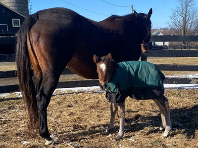 "I haven't seen (the filly) as of yet but I have photos of her when she was a half-hour old and when she was 12 or 15 hours old," Messina said. "They had her out in the paddock with a blanket on because here in New York we had a couple days where it was five degrees. Up where they are, it was close to zero.
