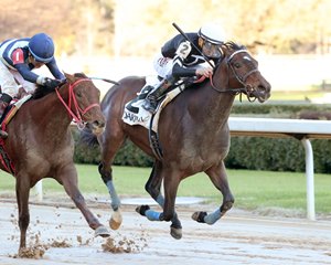In the final strides to the wire, it was Klassy Bridgette under Francisco Arietta who dug into the muddy dirt to capture the six-furlong event by a neck in a final time of 1:11.63. Pate was second and Key of Life was 2 3/4 lengths back in third.