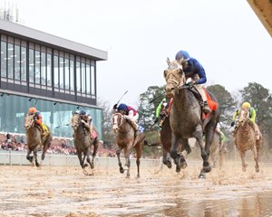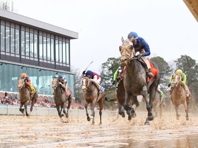 "She's consistent," Cox said. "I think that's a good word to start with. Like for it to stay muddy...I had some concerns with how much kickback she would take. The race before, I don't think the track had near as much moisture in it and she was kind of able to track them, not take as much mud, tip out and come running. She came back covered in mud, obviously. She improved. Had to pass more fillies and won going away. Very impressive with the gallop out. A mile and an eighth, with her pedigree, is something she should be able to handle. We'll see how it goes."
