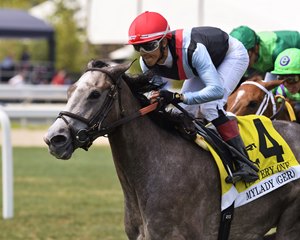 German-bred Mylady completed a last-to-first move in the March 4 The Very One Stakes (G3T) at Gulfstream Park to capture her first victory on North American soil in the 1 3/8-mile, $150,000 turf race.