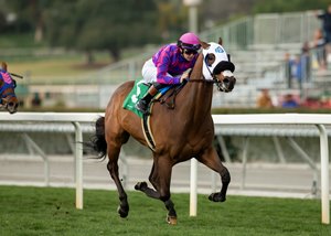 That trend continued March 5 as the son of Muhaarar took home his first graded stakes win, the $101,000 San Simeon Stakes (G3T) at Santa Anita Park pulling away for a 2 1/4-length triumph in 1:11.34. He is 3-2-1 in six starts in the United States for trainer Phil D'Amato.
