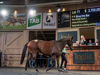 During last year's offering, Coolmore's Tom Magnier saw the bidding to AU$2.7M (US$1,920,808) to acquire the twice group 1-winning mare Shout The Bar from the Glenesk Thoroughbreds draft. Magnier was the sale's leading buyer with his single purchase, with Sheamus Mills Bloodstock, Longwood Thoroughbred Farm, and Peter Morgan sliding in second after purchasing two horses to the tune of AU$2 million. Segenhoe Thoroughbreds from Scone sold 11 of their 14 entries to be the leading vendor with an aggregate of AU$5,210,000.