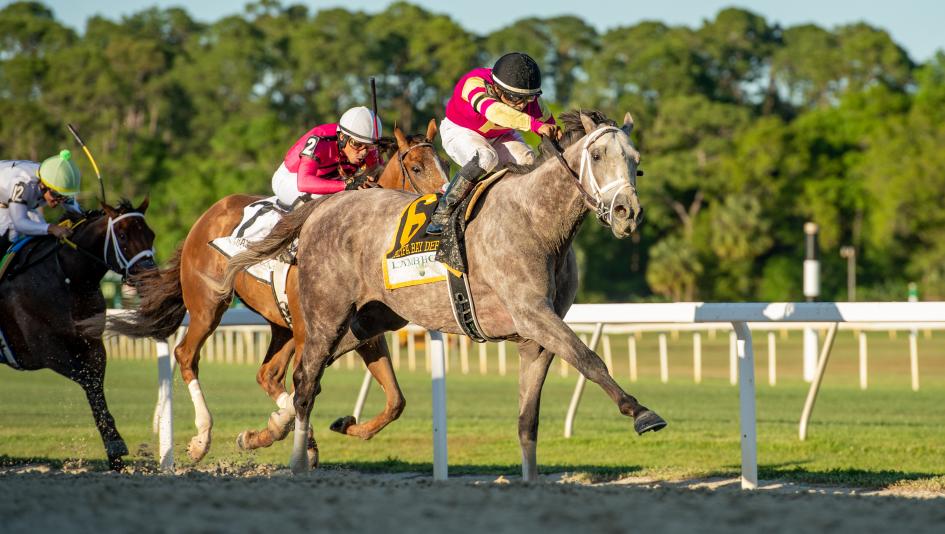 Off poorly and coming under an early drive from jockey Luis Saez when well behind in the $360,000 Lambholm South Tampa Bay Derby, Tapit Trice was racing more like a massive longshot than a 1-2 favorite.
