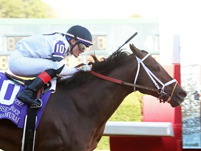 Last Samurai, advancing four-wide into the stretch, bore down on the stubborn pacesetter, drawing clear in the final sixteenth for a one-length tally.