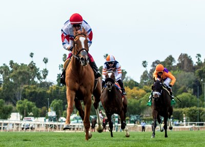 "I had no plans," said Dettori. "I rode the filly the other morning and I told Pete that I thought she was quite useful, she's a little bit hot. She broke well. Nobody wanted the lead, so I took it. I got her into a nice rhythm into the backstretch and as soon as we got to the quarter pole, she kicked and found a new gear, it was all over."