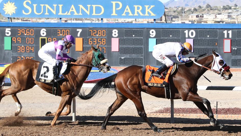 After stalking just behind wicked-fast early fractions, Texas-bred Wild On Ice surged in the stretch to post a 35.40-1 upset in the $600,000 Sunland Park Derby March 26 at the New Mexico track.