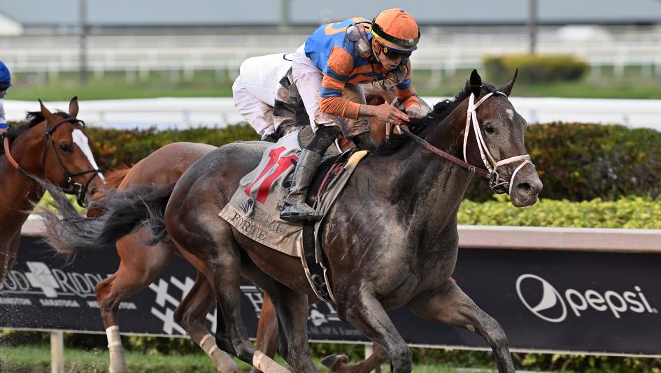 Last year's juvenile champion Forte turned what seemed like an apparent defeat into a dramatic one-length victory in the $1 million Grade 1 Curlin Florida Derby presented by Hill 'n' Dale Farms at Xalapa on April 1 at Gulfstream Park.