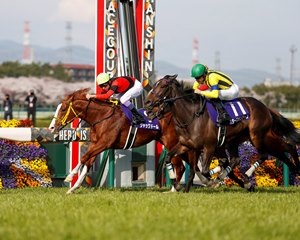 Stars on Earth, the reigning Yushun Himba (Japanese Oaks-G1) champion, just missed with a bold stretch rally under Christophe Lemaire with Danon the Kid third. Jack d'Or, a 5-year-old son of Maurice from the Unbridled's Song mare Ravarino, finished in stakes-record time of 1:57.4.
