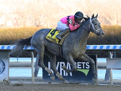 Gold Square's Slip Mahoney made his stakes debut last month and rallied from 13th to finish second by a distant 7 1/2 lengths to Raise Cain in the one-turn mile Gotham Stakes (G3) at Aqueduct. Ground loss played a key role in the beaten lengths as the son of Arrogate raced eight and nine paths wide on the final turn, which seemingly put him closer to the outer rail and the Aqueduct casino than the inner rail.