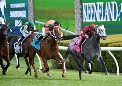 Gathered back at the Lexington oval April 8, it was as if the crowds had never left, and time had stood still as the gray mare replicated her triumph at the Breeders' Cup in a scintillating edition of the $319,094 Shakertown Stakes (G2T) for trainer Brad Cox and owners Qatar Racing, Marc Detampel, and Madaket Stables.