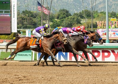 The Santa Anita Derby field did lose a major competitor when Geaux Rocket Ride had to be scratched the morning of the race. Trainer Richard Mandella said that at about 9 a.m. PT Geaux Rocket Ride spiked a fever of 103.2 degrees. A horse's temperature is considered normal between 99-101 degrees.