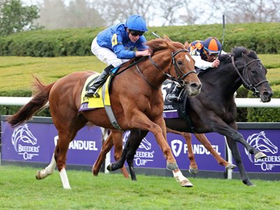At age 2, he won the 2021 Breeders' Cup Juvenile Turf (G1T) at Del Mar, and last year as a 3-year-old, he won the Woodbine Mile (G1T) in Canada and the Breeders' Cup Mile (G1T) when Keeneland was the host Breeders' Cup track.