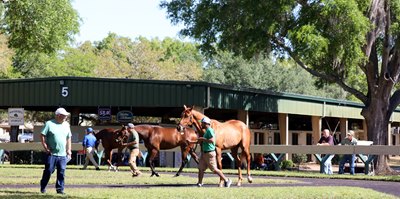 Hip 786, the Coastal Equine (Jesse Hoppel), agent, consigned Blame colt, named I'lltaketheblame. The colt is a half sibling to champion imported 2-year-old male in Puerto Rico Derek Adrian and grade 3 winner Jalen Journey. Dennis Edward Foster bred the colt out of Petunia Face , by Congrats, in Florida. Hoppel picked the pinhook up last year during the OBS October Sale for $70,000.