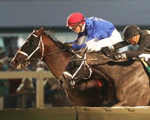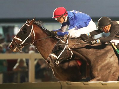 Tracking the leaders behind leisurely early splits of :25.03, :49.34, and 1:14.21, jockey Emmanuel Esquivel swung Tabeguache wide around the turn and took aim on favored Slip Mahoney, who had opened up a two-length advantage at the top of the lane. Wearing down his stubborn stablemate late, Tabeguache thrust his head in front at the wire. Dennington finished a distant third.