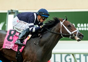 Endlessly , the Amerman Racing homebred, lurked near the back of the field for the first half mile only to draw even around the far turn and pull away for his second win in as many starts. He stopped the clock in 1:35.28 with a 2 1/4-length advantage.