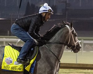 Adding blinkers following a fifth-place finish in the slop in the Jim Dandy Stakes (G2) at Saratoga Race Course, Gary and Mary West's Hit Show is the 3-1 morning-line favorite against a dozen other 3-year-olds in the $400,000 Oklahoma Derby (G3) Sept. 24 at Remington Park.