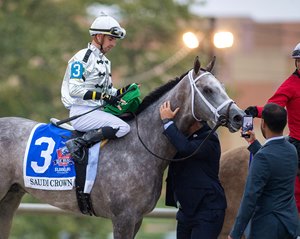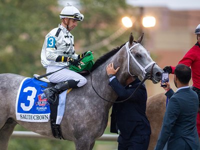 The gray didn't appear in public until mid-April this year, when he captured a six-furlong maiden special weight at Keeneland by 4 3/4 lengths, a victory that was followed by an allowance optional/claiming tally at Churchill Downs. Bidding for a hat trick, Saudi Crown stretched out to a mile for the Dwyer Stakes (G3) at Belmont Park and missed by a nose to Fort Bragg after setting demanding fractions of :22.47, :44.63, and 1:08.84. In the nine-furlong Jim Dandy Stakes (G2), Saudi Crown rationed his front-running speed more conservatively but was nosed on the wire by last year's champion 2-year-old colt, Forte , who survived a stewards' inquiry that generated much subsequent controversy. On Saturday, Saudi Crown gained rich compensation for that defeat, controlling the Pennsylvania Derby (G1) throughout to score by a half-length from the strong-closing Dreamlike . Saudi Crown would likely need to win the Breeders' Cup Classic (G1) to earn an Eclipse Award as top 3-year-old—and he's not a certain starter—but on form and speed figures it's hard to deny that he's very close to the top of what is a very even division.