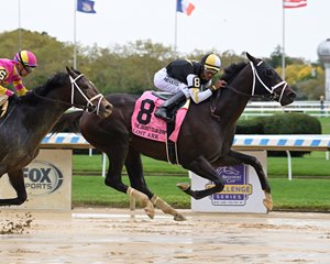 The Jockey Club Derby Invitational became another casualty of the brutally wet weather New York has been experiencing this fall and was rained off the turf to the main track Oct. 7 at the Belmont at the Big A meet.