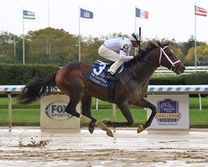 "I wanted to give him one more run around one turn, and take the blinkers off. It worked out. He ran big. The blinkers off helped a lot. He settled in well and didn't pull. The blinkers had a lot to do with that," Cox said. "He learned a lot in the Hopeful, and we learned a lot about him, and it paid off today."
