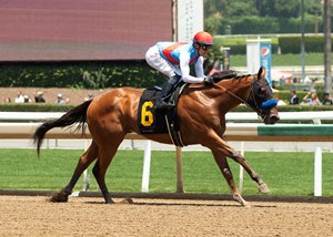 A 2-year-old son of Good Magic , Muth rated comfortably in fourth under jockey Juan Hernandez behind sizzling early fractions before angling out turning for home, and engaged the frontrunning Wine Me Up at the quarter pole. The pair sparred briefly down the lane but it was all Muth at the finish a clear winner in a final time of 1:42.45.