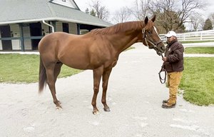 Higher Power, a grade 1-winning millionaire by Medaglia d'Oro from a deep Pin Oak Stud family, is represented in 2023 by multiple six-figure first-crop yearlings. A dominant 5 1/4-length winner of the 2021 Pacific Classic Stakes (G1), Higher Power posted a 113 Equibase Speed Figure for that victory. He will be a freshman sire next year.