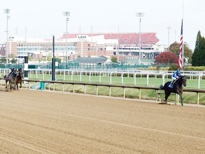 In a weekend where the Godolphin powerhouse captured two Breeders' Cup races with Cody's Wish and Master of The Seas , the operation managed to pull one more feather out of its cap Nov. 4 at Churchill Downs. Saturday marked the debut of the ornately-bred Knightsbridge , a half brother to Godolphin's grade 1 winner Speaker's Corner , and he didn't disappoint those who had averted their eyes momentarily from the action of Santa Anta Park to the gray skies of Louisville, Ky.