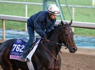 The regally-bred Tamara, a daughter of the Hall of Fame race mare Beholder , had finished seventh as the 4-5 favorite in the Nov. 3 Juvenile Fillies at Santa Anita Park. Entering the Breeders' Cup on a two-race win streak, the filly led the race through splits of :22.47, :46.60, and 1:10.95 before fading at the top of the stretch. She was beaten 8 1/4 lengths behind the winner Just F Y I . The race was her first time stretching out beyond seven furlongs.