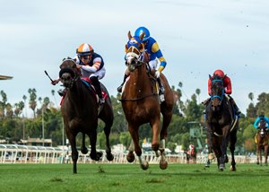 Running for the partnership of Hanson, California Racing Partners, and Ciaglia Racing, One More Bid scored his finest victory in the Dec. 26 Mathis Mile Stakes (G2T) at Santa Anita a month after breaking his maiden. In the Mathis Mile, he fought gamely between horses to prevail by a nose over graded stakes winner Balnikhov and Sumter in a thrilling photo finish.