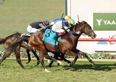 Things would be different in the Cecil B. DeMille, where jockey Antonio Fresu allowed Stay Hot to stay as far back as he wanted behind sizzling early fractions of :22, :46.30, and 1:12.16. Widest of all into the lane, Stay Hot had plenty left in the tank this time, storming home to the wire a neck winner over a game Rothschild .