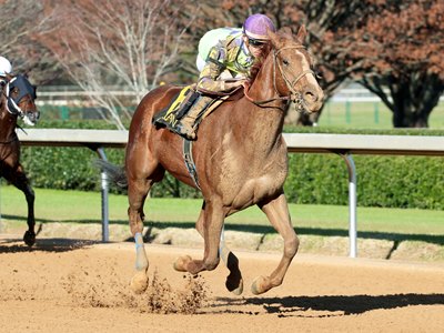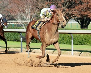 Replicating Tejano Twist's closing performance, Butterbean also rallied from the clouds to win the $150,000 Mistletoe Stakes three races later—though her margin of victory was much smaller.