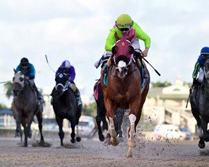 A Florida homebred for Jacks or Better Farm, Spirit Wind had been unraced since a fourth-place finish in the May 29 Winning Colors Stakes (G3) at Churchill Downs. Back at Gulfstream, a track where the Bahamian Squall filly has captured two stakes and was grade 2-placed in the Princess Rooney Invitational Stakes (G2) while under the care of Ralph Nicks, Spirit Wind prevailed by a half-length after controlling the pace throughout.
