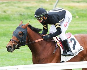 Hall of Famer John Velazquez rides Stone Age, whom Brown cuts back in distance and races with blinkers added.