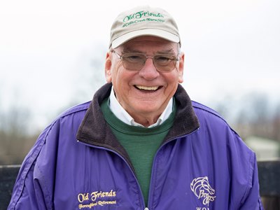 Michael Blowen, founder and president of Old Friends, shared his enthusiasm in welcoming the two beloved geldings to a herd of around 300 retired Thoroughbreds, which span several properties in Kentucky and at Old Friends at Cabin Creek: The Bobby Frankel Division in Greenfield Center, N.Y.