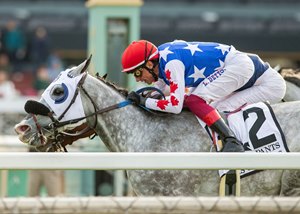 Owned by Bakster Farm and Gerald Isbister, Honey Pants was turning the tables on Elm Drive, who had defeated her eight months earlier on the same downhill turf course in the Mizdirection Stakes. Honey Pants would not be denied this time. Riding the rail in third position behind blistering fractions of :22.17 and :43.99, jockey Frankie Dettori cut the corner with the Cairo Prince mare turning for home she assumed command at the top of the lane.