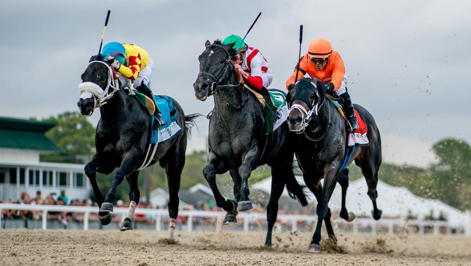 Neither a tote outage, a half-hour post time delay, nor a sluggish pace could stop strong-finishing Domestic Product from winning the Grade 3 Lambholm South Tampa Bay Derby March 9 at Tampa Bay Downs.