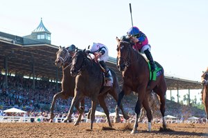 It was a sunny afternoon at Santa Anita Park Nov. 3 when Just F Y I , Jody's Pride , and Candied met to determine the 2-year-old filly championship. Just F Y I proved best on the day while Jody's Pride and Candied closed ground late. The trio meets again at the same 1 1/16-mile distance but have experienced different routes over the last few months.