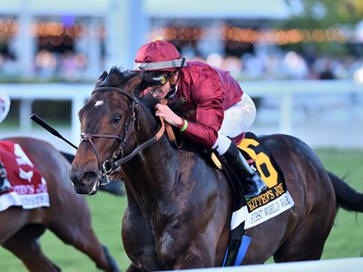 Bred by Skyfall Thoroughbreds and owned by Qatar Racing and Hunter Valley Farm, the dark brown colt has finished first or second in all but one of his five career starts (2-2-0), with a fourth in last year's Bourbon Stakes (G2T). The two seconds—an allowance optional claimer and the Mucho Macho Man Stakes—were a change for First World War as they were dirt races.