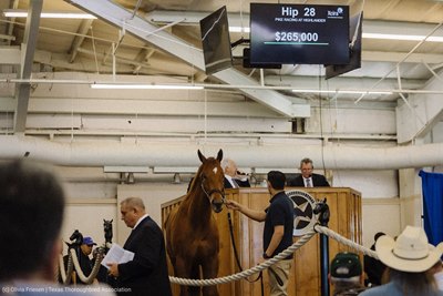 A Texas-bred Street Boss colt topped the 2024 Texas 2-Year-Olds in Training Sale when the hammer fell at $265,000 April 3 in Grand Prairie, Texas.