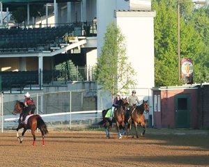 With trainer Phil D'Amato's wife, Sherri, aboard, the son of Ghostzapper jogged about a mile around the outside rail. The team was pleased with how he shipped and took to the track Wednesday. Stronghold has had success at Churchill Downs before, having broken his maiden there Oct. 1.
