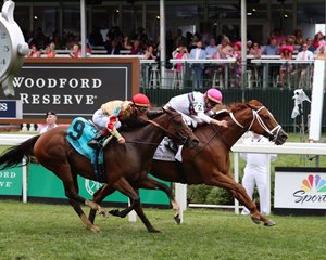 Stone Silent took a brief lead nearing the top of the stretch before tiring while Ova Charged, under Florent Geroux, kept right on going to hold on for the win. Secret Money was up for second and Run for the Hills ran late to nab third. The 5 1/2-furlong dash was run over yielding turf after copious morning rain and clocked in 1:03.71. Two of the original 10 entries, Charriere and Ag Bullet , were race-day scratches.