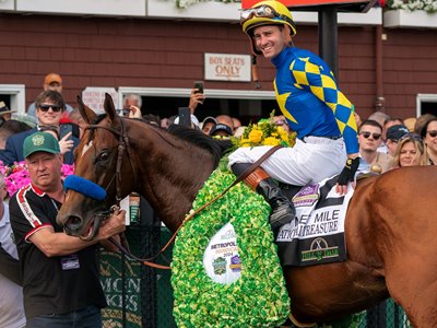 Poll leader National Treasure continues to train forwardly since his victory in the June 8 Metropolitan Handicap (G1) during the Belmont Stakes Festival at Saratoga. The Bob Baffert trainee, who also won the Pegasus World Cup Invitational Stakes (G1) to begin his 4-year-old season, breezed five furlongs in 1:00 2/5 July 8 at Santa Anita Park.