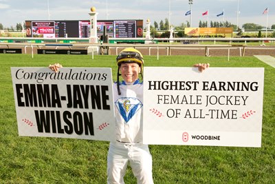 One of Canada's top riders, Emma-Jayne Wilson, became the leading purse-earning female rider in North American racing history July 11 at Woodbine.