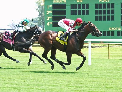 Away from the gates more sharply than in his debut, Dream On prompted the front-running Brie's in Town under Luan Machado and headed that rival turning for home. Striding out powerfully down the lane, he edged in front of his foe inside the final sixteenth and struck the wire a length in front in 1:01.48 for the 5 1/2 furlongs on a firm turf course.