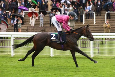 Fresh from her heroics aboard Bradsell in the Nunthorpe Stakes (G1) at York Aug. 23, Hollie Doyle sent her mount Duty First to the lead through the race's early stages. Given the testing conditions, the pace was slow, with Anshoda and Biniorella Bay positioned just behind the leader. As the race turned into the straight, Doyle led the field across to the stand-side rail, as is customary when the ground is soft, in what looked a race-winning move. However, under a firm Billy Loughnane drive, Anshoda picked up strongly and powered clear of her rivals to give his father, trainer David Loughnane, a memorable victory.