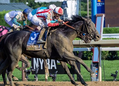 "I thought I was going to be a little closer (to the pace), to be honest," Prat said. "Then, he came on the bridle nicely. From the half-mile to the three-eighths pole, I thought I was traveling very well. After that, he was very brave to get the win. I thought it was a great, great effort."