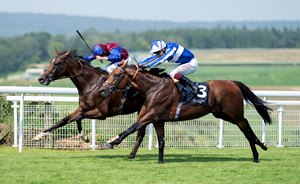 Bellum Justum, trained by Andrew Balding, won the April 23 Blue Riband Trial at Epsom Racecourse and finished seventh in the Epsom Derby (G1), beaten 13 1/4 lengths by City of Troy on ground rated good to soft. The Sea The Stars colt owned by King Power Racing came back to form with a third in the Hampton Court Stakes (G3) at Ascot and a second in the Gordon Stakes (G3) at Goodwood. Both of those recent runs came on good to firm ground and the distance here should suit him. Frankie Dettori replaces regular rider Oisin Murphy.