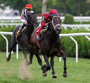 Qatar Racing's West Hollywood was surging past him from the outside at that moment and went on to take the Saranac for Cox by 5 1/2 lengths under Flavien Prat.