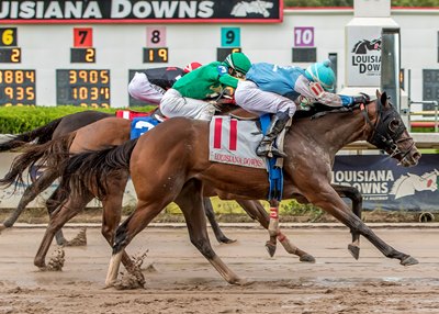 Quite the Catch, a 2-year-old filly out of the winning Tale of the Cat mare Exceedexpectations, won for the second time in three starts. She has earned $69,600 for owner Nicholas James Latour. Quite the Catch was bred in Louisiana by Brandon Adcock.